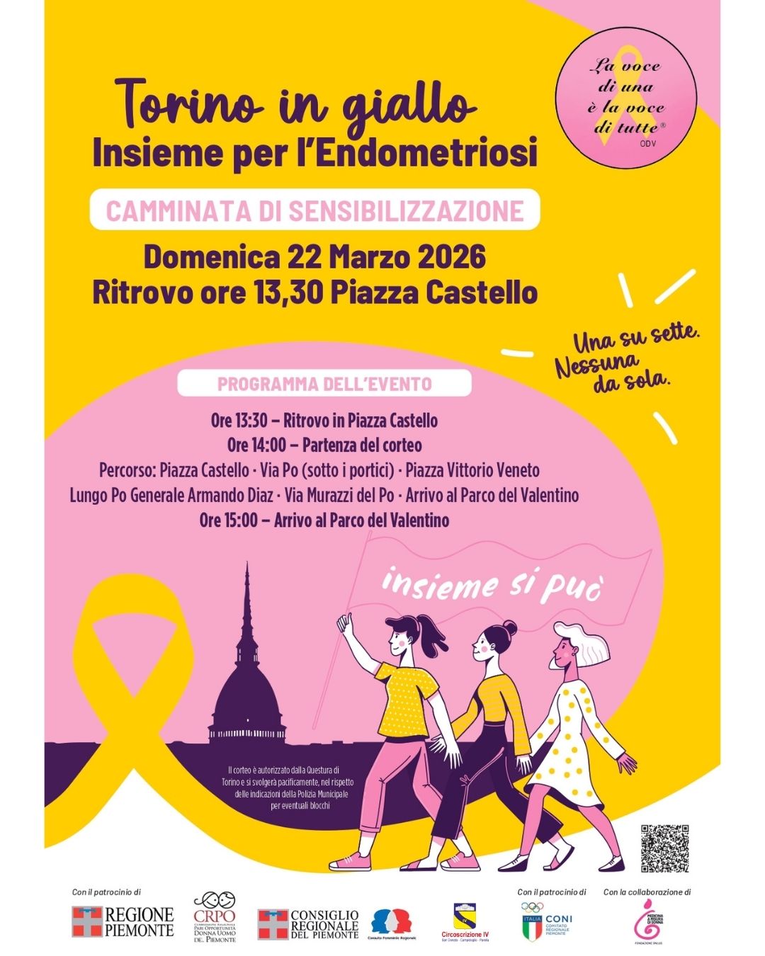 Domenica 22 marzo 2026 si svolgerà la prima edizione di “Torino in Giallo”, iniziativa dedicata alla sensibilizzazione sull’endometriosi.