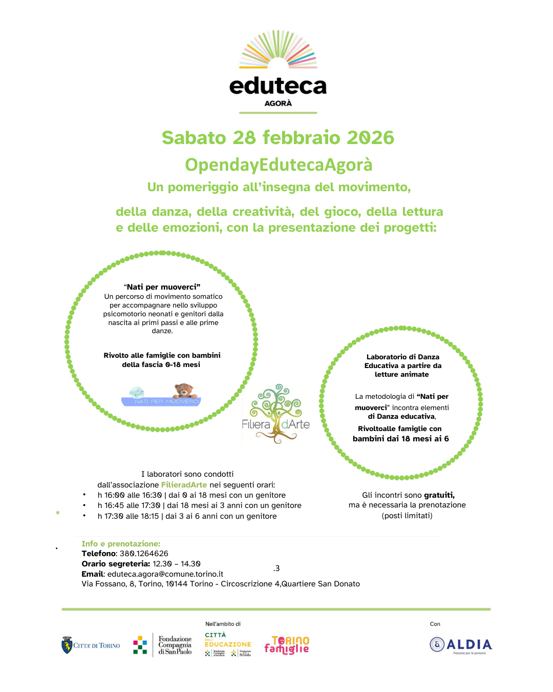 L’ingresso è libero con prenotazione, sarà un’occasione per conoscere da vicino gli spazi, incontrare gli educatori e scoprire le attività dell’Eduteca.