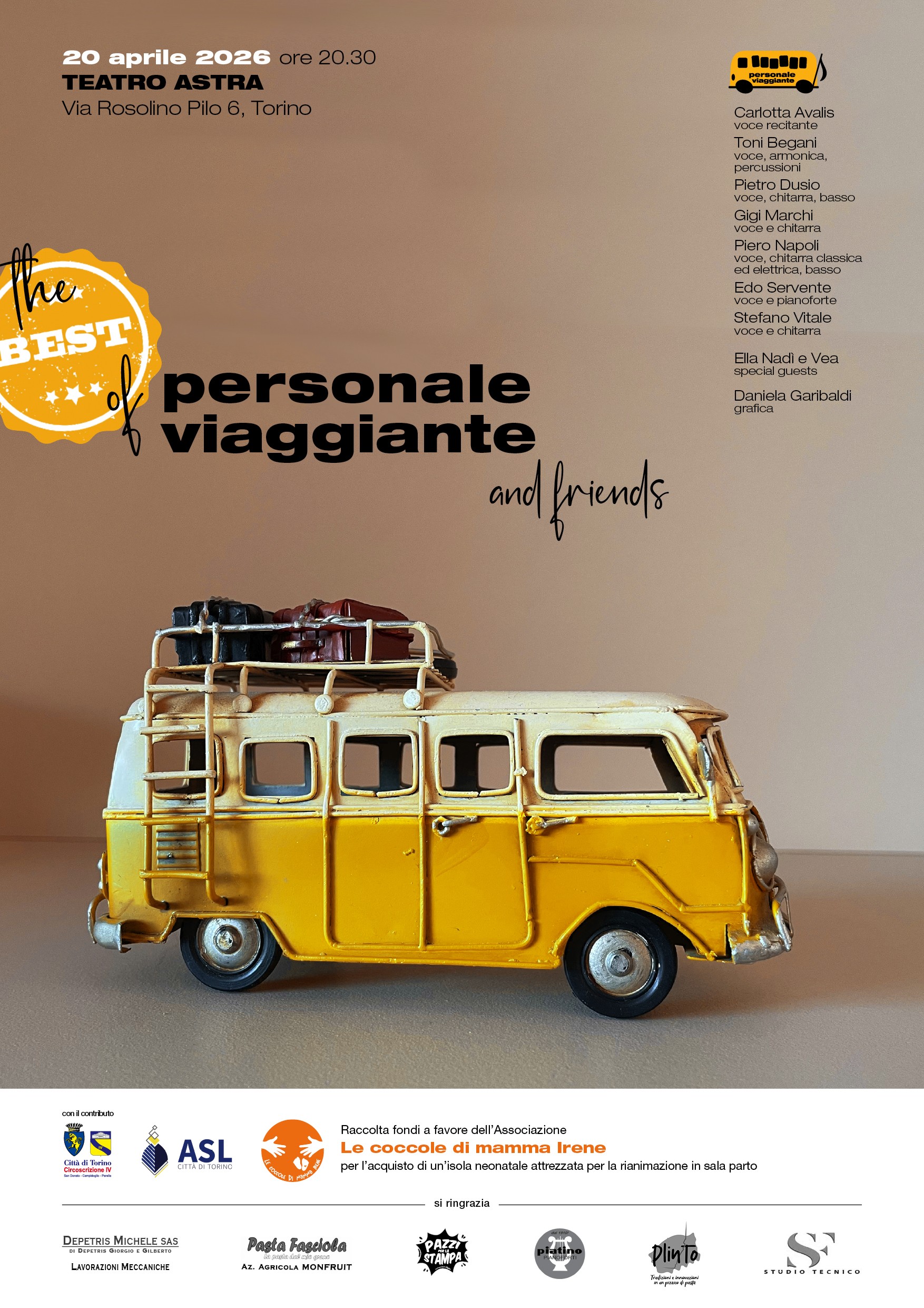 il personale viaggiante sostiene l'associazione Le coccole di mamma Irene con lo spettacolo ”The BEST of personale viaggiante and friends”