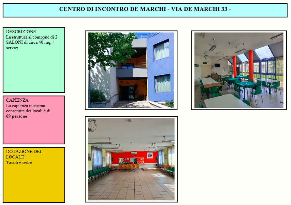 I Centri di Incontro sono strutture comunali a disposizione della cittadinanza per favorire l'aggregazione sociale e l'organizzazione di attività culturali, ricreative o sportive.