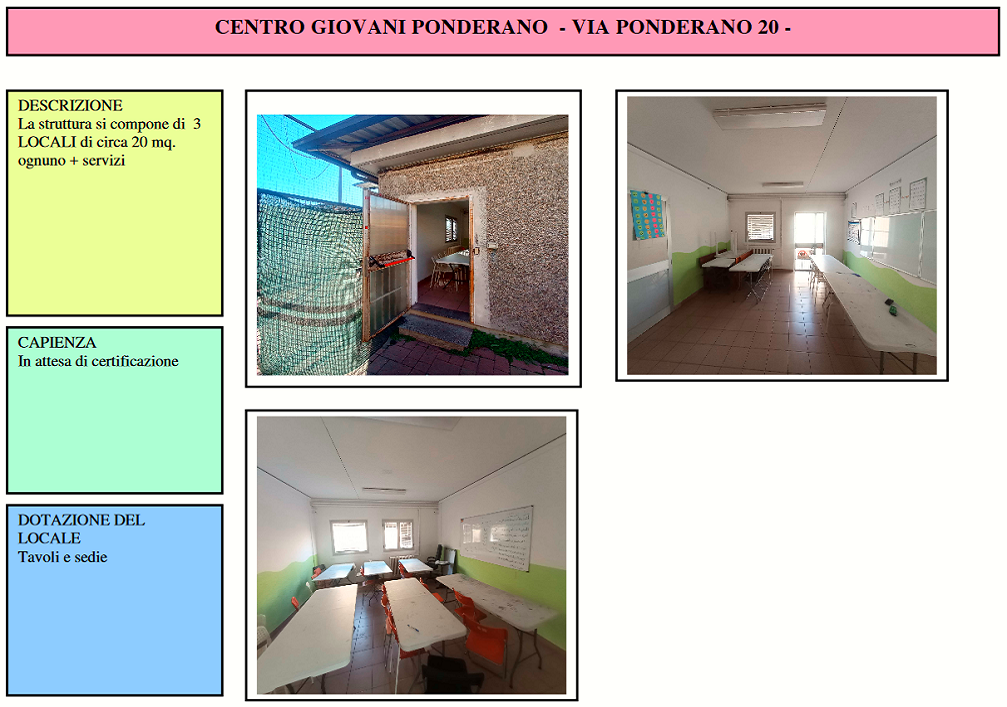 La Circoscrizione 5 mette a disposizione di Enti o Associazioni senza fini di lucro, ai sensi dell'art. 4, comma 1, del Regolamento n. 186, tali locali.