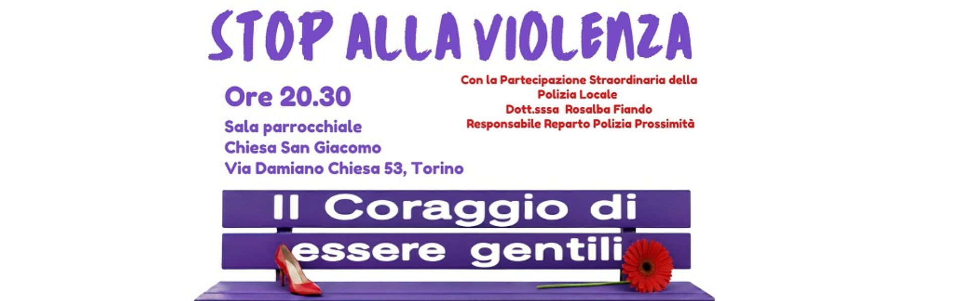 In occasione della Giornata internazionale per l'eliminazione della violenza contro le donne, la Circoscrizione 6 della Città di Torino invita la cittadinanza a partecipare all'evento "Il coraggio di essere gentili", in programma martedì 25 novembre 2025 alle ore 20.30 presso la Sala parrocchiale della Chiesa San Giacomo, in via Damiano Chiesa 53.