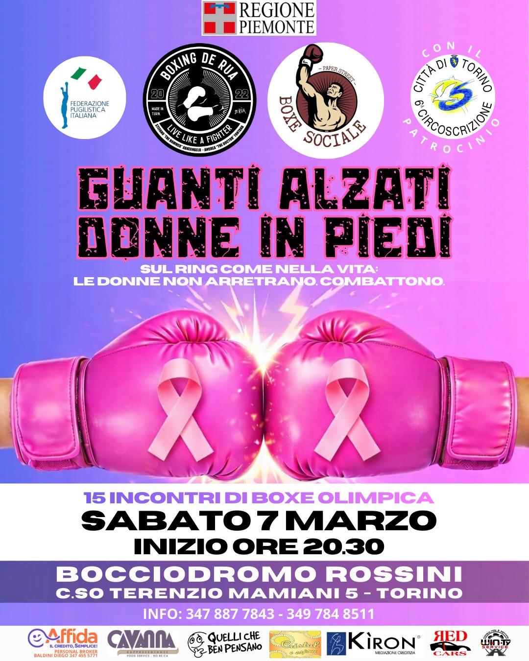 Sabato 7 marzo, alle ore 20.30, il Bocciodromo Rossini di corso Terenzio Mamiani 5 ospiterà l’evento “Guanti Alzati – Donne in Piedi”, una serata dedicata alla boxe olimpica.