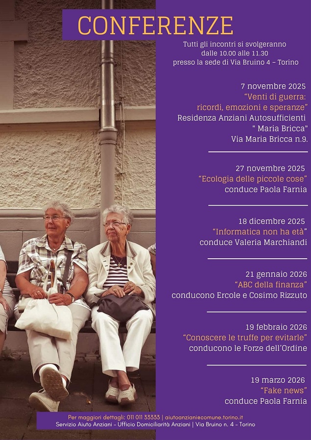 L’iniziativa è organizzata dal Servizio Aiuto Anziani in collaborazione con la Dott.ssa Paola Farnia, la Cooperativa Equilibrismi e la Fondazione La Stampa – Specchio dei Tempi.
