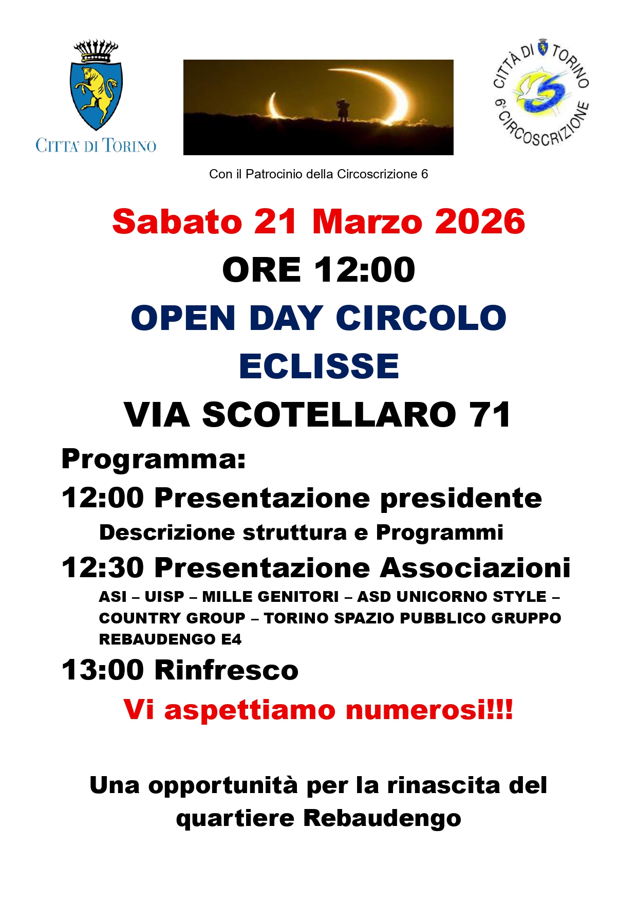 Open day al Circolo Eclisse, Sabato 21 Marzo 2026.