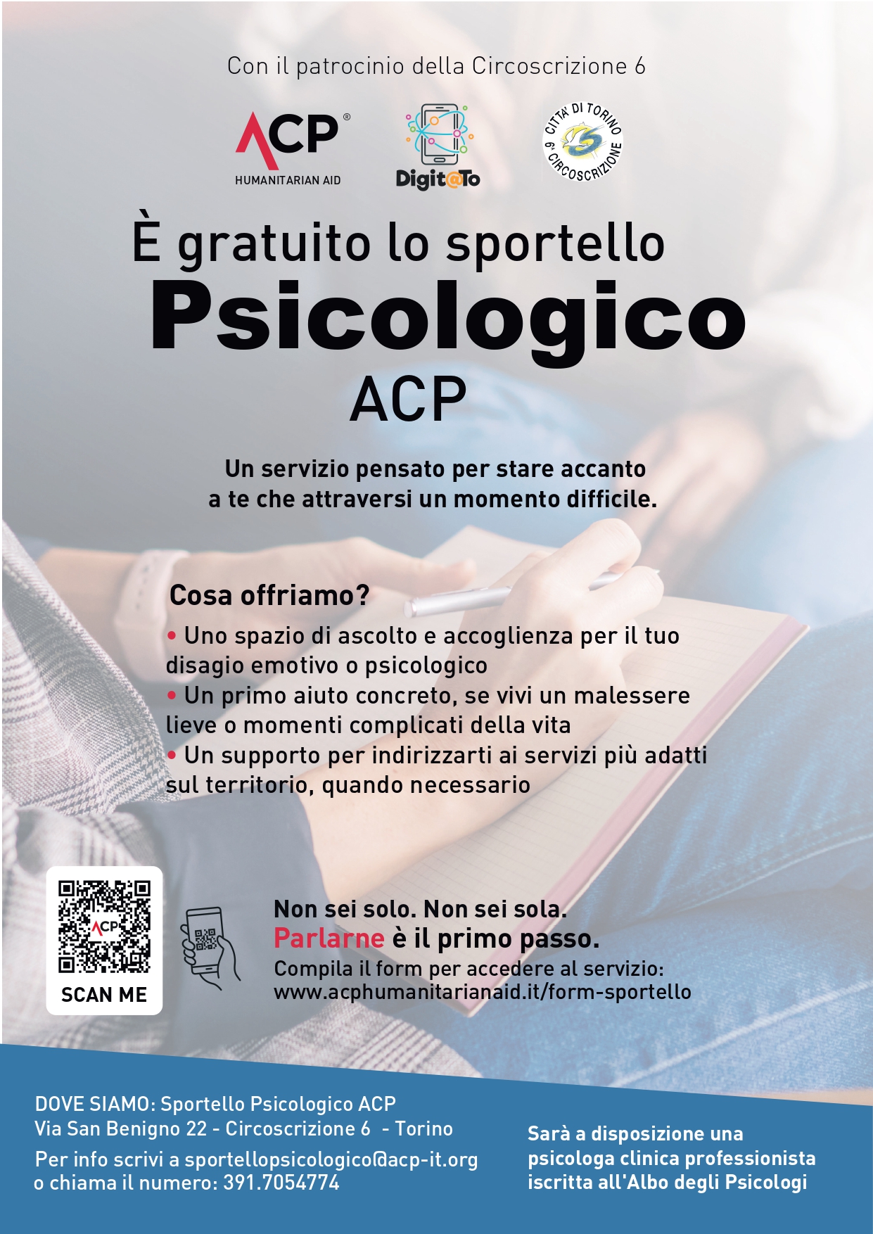 L'associazione Acp Humanitarian Aid offre uno spazio di ascolto e accoglienza aperto a chiunque stia attraversando un momento difficile o desideri semplicemente confrontarsi.