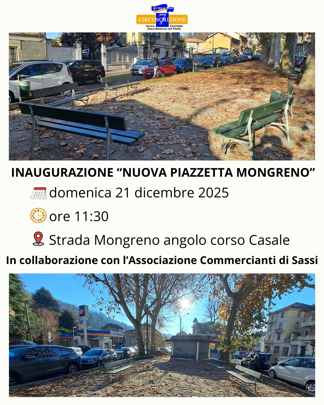 Domenica 21 dicembre, alle ore 11,30, si terrà in corso Casale angolo strada Mongreno l’inaugurazione della “Nuova Piazzetta Mongreno”, importante opportunità di socializzazione a cielo aperto per i residenti di tutte le età.