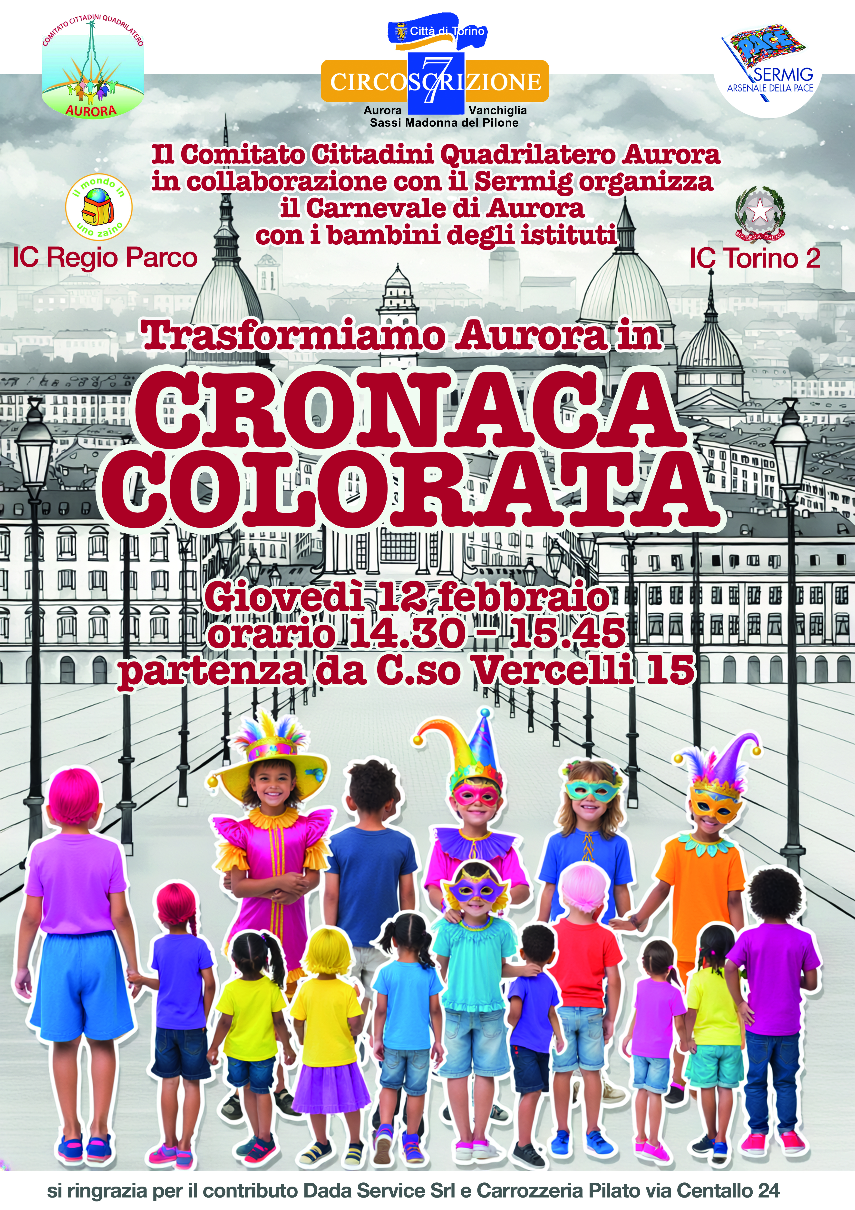 Giovedì 12 febbraio 2026 si terrà la sfilata del "Carnevale di Aurora", organizzata dal Comitato Cittadini Quadrilatero Aurora in collaborazione con il Sermig. Il tema di quest' anno è "Trasformiamo Aurora in Cronaca Colorata".